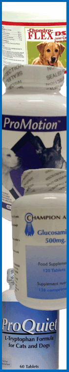 A combination of glucosamine, bioflavanol and collagen. ProMotion is available in strengths for small dogs and cats and medium and large dogs.